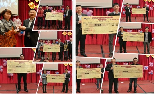 本屆年會由總經(jīng)辦劉春龍負(fù)責(zé),各部門負(fù)責(zé)人做了關(guān)于2013年各部門工作總結(jié)報(bào)告以及2014年各部門工作規(guī)劃,接著公司總經(jīng)理鄭翔做了2013年工作總結(jié)報(bào)告,并對2014年公司發(fā)展做出了全面規(guī)劃。各部經(jīng)理宣讀了獲得2013年公司優(yōu)秀員工名單,并號召全公司同事向他們學(xué)習(xí)。隨后,總經(jīng)理親自為2013年對公司做出卓越貢獻(xiàn)的員工及團(tuán)隊(duì)頒發(fā)獎金,已獎勵他們過去一年的取得的成果 。 年會時,同事們歡聚一堂,各種有趣的娛樂游戲?qū)⒛陼葡蛄烁叱薄?/span>