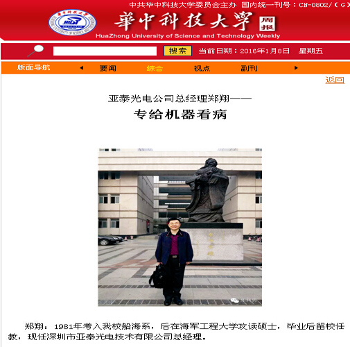 華中科技大:專給機器看病的醫(yī)生--記亞泰光電總經理鄭翔先生!