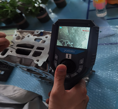 客戶主要用于檢查汽車發(fā)動機水泡情況,每臺發(fā)動機缸蓋都要檢查,一天檢查200多臺(分白夜班),一臺10多次,按缸蓋上面的紋路形狀來回拖動檢測。客戶之前買過別家定型管的內窺鏡,用了沒多久就壞了,而且操作起來不方便,客戶看過亞泰光電2.8mm工業(yè)內窺鏡,這次想看一下亞泰更細的內窺鏡,實測過程中,用2.2mm的內窺鏡檢測缸蓋內部時還有多余空間,能明顯看清內部拐彎處情況,還在一處發(fā)現(xiàn)內部有鑄造鐵屑,甲方相關設備管理維護人員對我們的內窺鏡效果比較滿意,雙方己確定后續(xù)深入合作計劃。