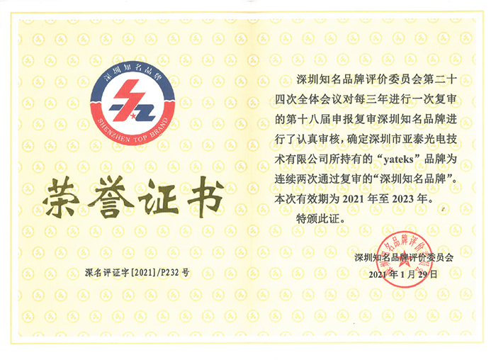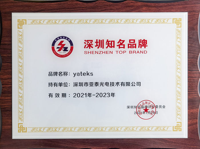 隨后,羅琪琳部長將標志著中國優質品牌符號的“深圳知名品牌”證書及牌匾交到了市場相關負責人手上,這份承載著評委會對亞泰光電產品和服務質量水平充分肯定,與社會公眾對于亞泰光電品牌發展認可和期許的榮譽,將更加促進亞泰光電的發展進程和管理水平上升到更高、更新的臺階。