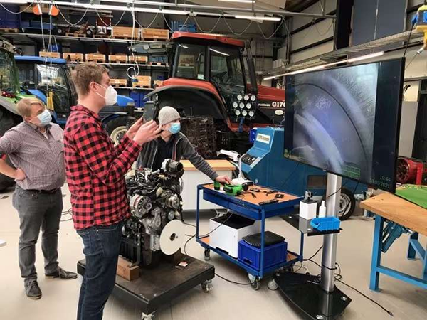 工業內窺鏡是一種配備光學元器件的檢查工具。它用于檢查沒有它就無法可視化的區域和狹小空間。此類檢查工具有一個手持的主機,主機連接到一個帶攝像頭并且能360°轉向的長插入管。比如,我們可以將工業內窺鏡的長管線插入發動機中,以便無需拆開發動機就可以對其進行檢查。技術檢修人員可以使用此工具查找復雜組件內部的裂紋、腐蝕和一般磨損跡象。帶有測量功能的內窺鏡除了查找裂紋等,還可以測量裂紋的長度,腐蝕的面積,受損的深度等,為技術人員檢修提供參考。