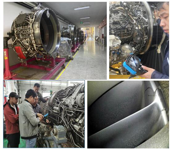 客機維護的工程師為提高巡檢和運維的工作效率,同時檢查出發動機內部結構損傷,提早發現和排查安全隱患,使用工業視頻內窺鏡在大推力航空發動機,渦扇發動機,壓氣機,發動機葉片,空壓機葉片、燃燒室、油路和潤滑部位進行探傷和狀態檢查。針對空間狹小和特殊工件的部位,只能用特定鏡頭進行觀察測量。因為渦輪發動機獨特的內部結構為檢測工作帶來巨大的挑戰,所以要求內窺鏡的結構牢固、性能穩定,有非常強的導向能力、明暗可按需調整的照明、清晰的動/靜態畫質以及良好的操控便攜性。