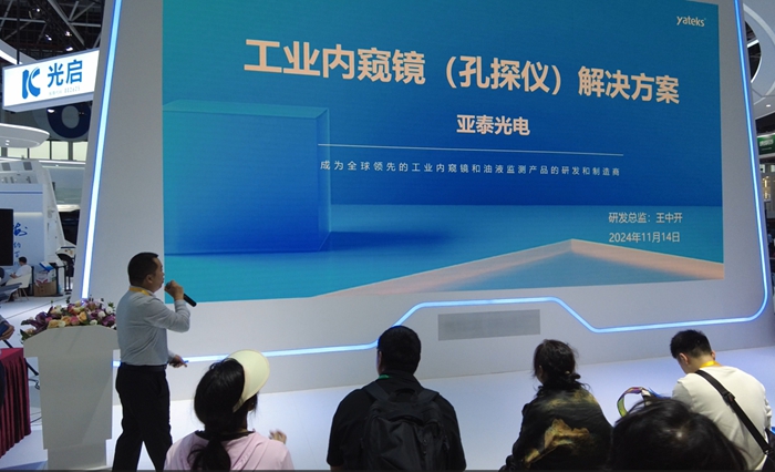 11月14日,亞泰光電繼續(xù)在航展現(xiàn)場舉辦了先進檢測技術交流會。此次交流會聚焦于工業(yè)內窺鏡(孔探儀)解決方案及在線油液監(jiān)測傳感器技術。公司研發(fā)總監(jiān)王中開先生再次登臺,詳細介紹了亞泰光電在工業(yè)內窺鏡領域的最新研究成果和解決方案。這些方案以雙百萬高清晰度、極細管徑、極近焦鏡頭等特點,能夠滿足航空航天等不同行業(yè)客戶的多樣化需求。
