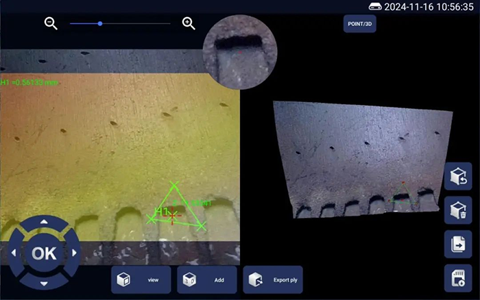亞泰光電三維內(nèi)窺鏡的核心突破在于高精度三維建模與實時測量。其搭載的雙目立體成像技術(shù),可生成3D點云圖、深度圖和剖面圖,最小測量精度達(dá)到0.01mm,遠(yuǎn)超傳統(tǒng)二維檢測的局限。