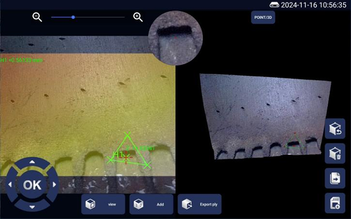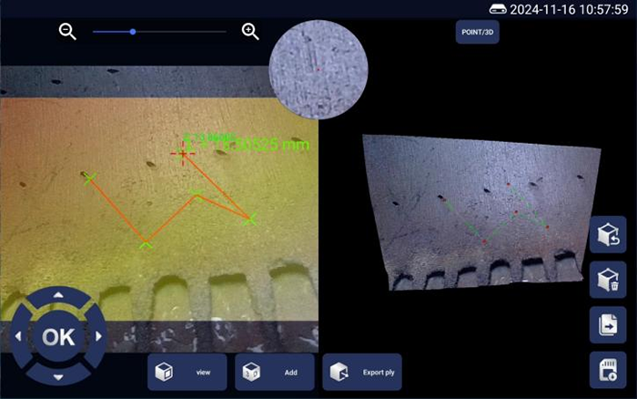 2、精準三維測量功能——生成3D點云圖、深度圖、剖面圖等重現被測物體外貌輪廓,其中三維立體點云圖可縮放、旋轉等,實時驗證選點準確性,避免選點錯誤導致的測量結果失準。